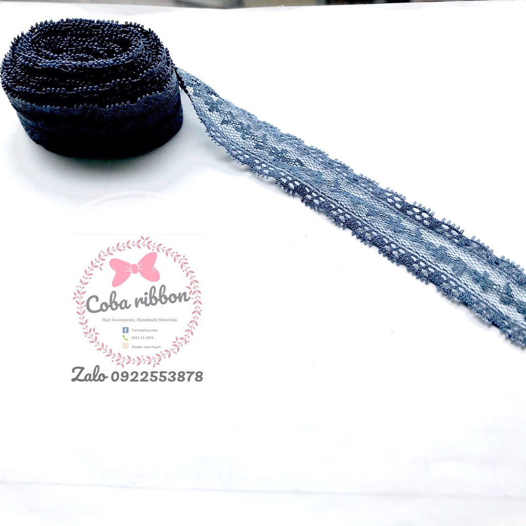 Chất liệu ren mỏng, viền 2 biên, được nhuộm màu xanh ghi.