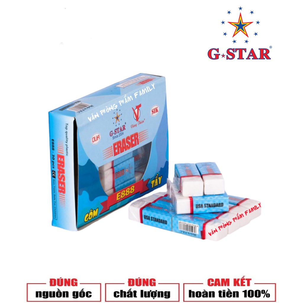 Văn Phòng Phẩm > Bút Các Loại > Dụng Cụ Tẩy Xoá || Bộ 30 cục gôm màu trắng E-888 G-STAR được làm bằng cao su tự nhiên, dẻo dai, có độ đàn hồi tốt