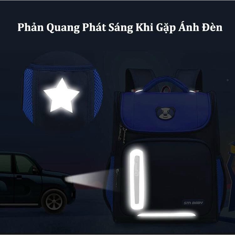 Viền cặp có đai phản quang giúp bé an toàn và dễ được phát hiện vào ban đêm.