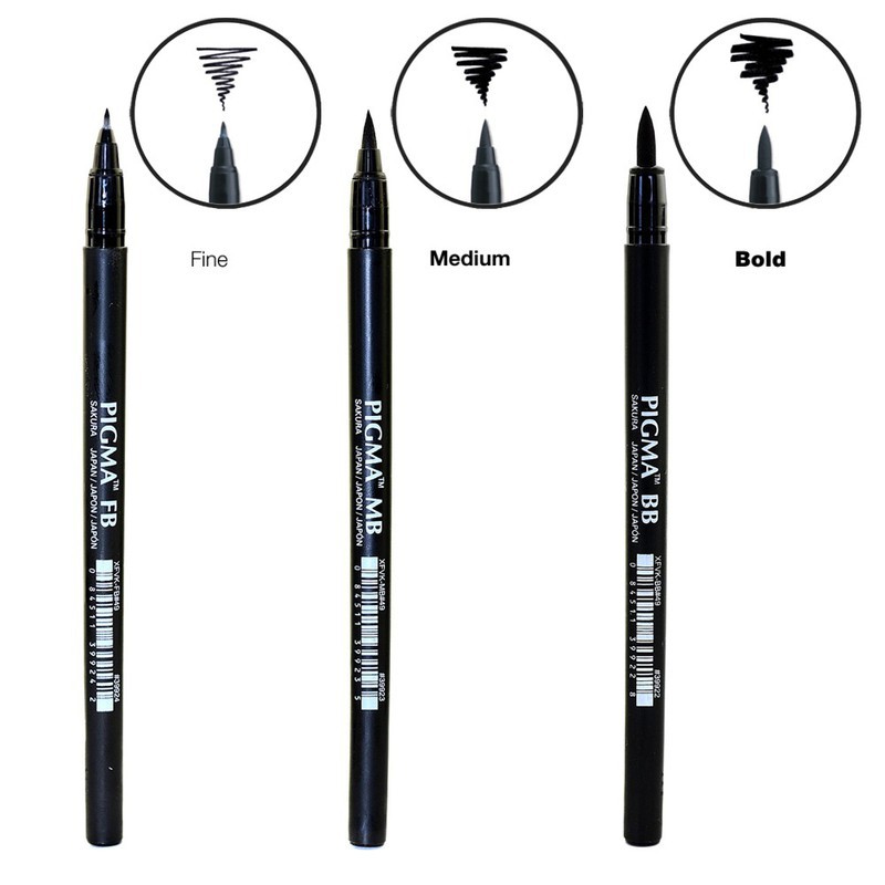Giới thiệu Bút brush Pigma Sakura FB MB BB đầu lông màu đen