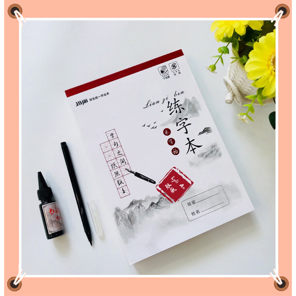 Văn Phòng Phẩm > Bút Các Loại > Bút Lông Màu || Combo 10 quyển vở luyện viết chữ Hán có bìa - Tặng kèm 1 bút lông 1 lọ mực