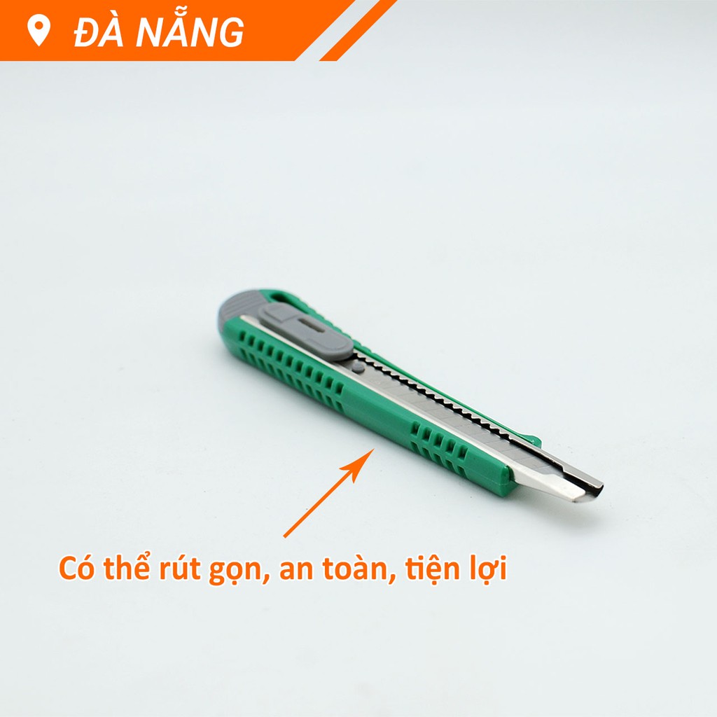 Tay cầm bọc nhựa được thiết kế có những đường vân chạy dài tạo cảm giác chắc chắn, chống trơn trượt khi sử dụng. Phần tay trượt có thể điều chỉnh độ dài lưỡi dao theo từng nấc theo ý muốn.