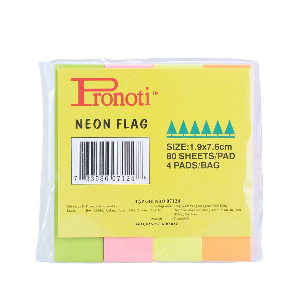 Giấy Note Pronoti màu dạ quang nổi bật, mỗi màu là một khối giấy, bạn có thể dùng để ghi chú lại tất cả các thông tin theo ý muốn. Sản phẩm phù hợp với nhiều mục đích sử dụng như để ghi giá, ghi nhớ, nhắc nhở,... trong công việc và học tập. Giấy note có kích thước nhỏ gọn, dễ dàng cất giữ và mang theo.