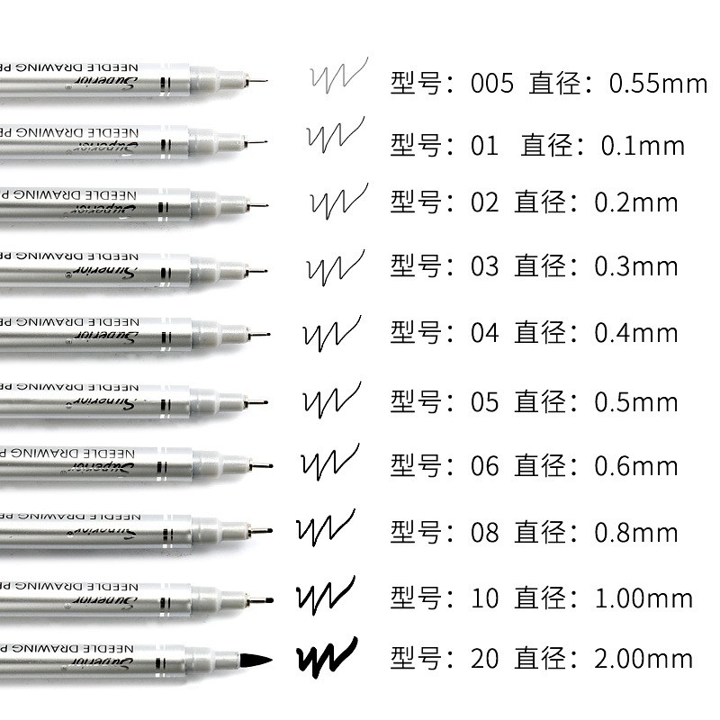 + Các họa sĩ chuyên sử vẽ manga, họa sĩ vẽ màu nước và vẽ illustratiors rất yêu thích sử dụng bút vẽ kỹ thuật Superior. Bút có 10 size từ nét thanh cho đến nét đậm để tạo đường nét cho tác phẩm. Kích thước nhỏ nhất của bút là 0.05 đi nét chi tiết rất tốt. Với nhiều kích thước khác nhau bút vẽ kỹ thuật Superior có thể dùng trong mỹ thuật và cả trong đời sống hằng ngày. Bút cũng là lựa chọn tốt cho người đam mê viết thiệp tay, trang trí sổ nhật ký, lưu bút.