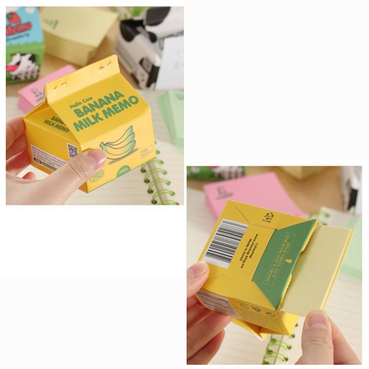 Văn Phòng Phẩm > Sổ & Giấy Các Loại > Giấy Ghi Chú || HCM - Hộp giấy note ghi chú 220 tờ kiểu hộp sữa tươi chuối, trà xanh, socola sáng tạo