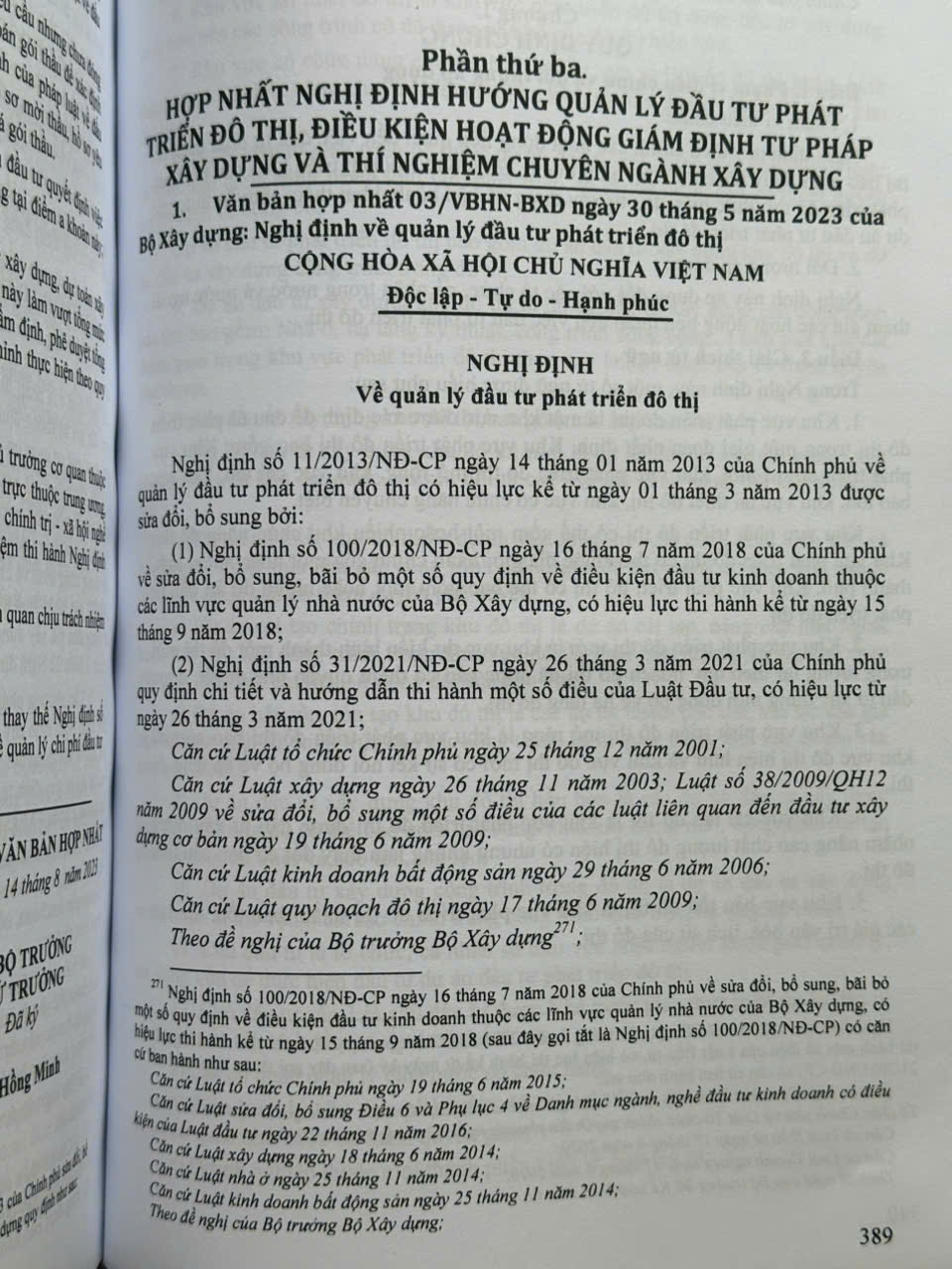 Phần thứ ba. Hợp nhất nghị định hướng quản lý đầu tư phát triển đô thị, điều kiện hoạt động giám định tư pháp xây dựng và thí nghiệm chuyên ngành xây dựng