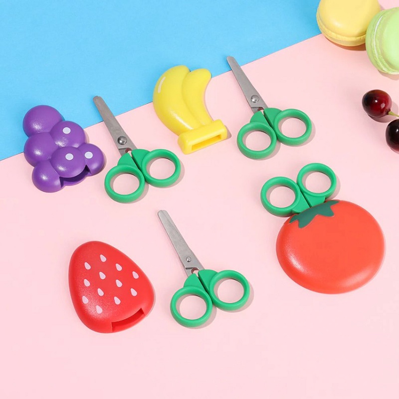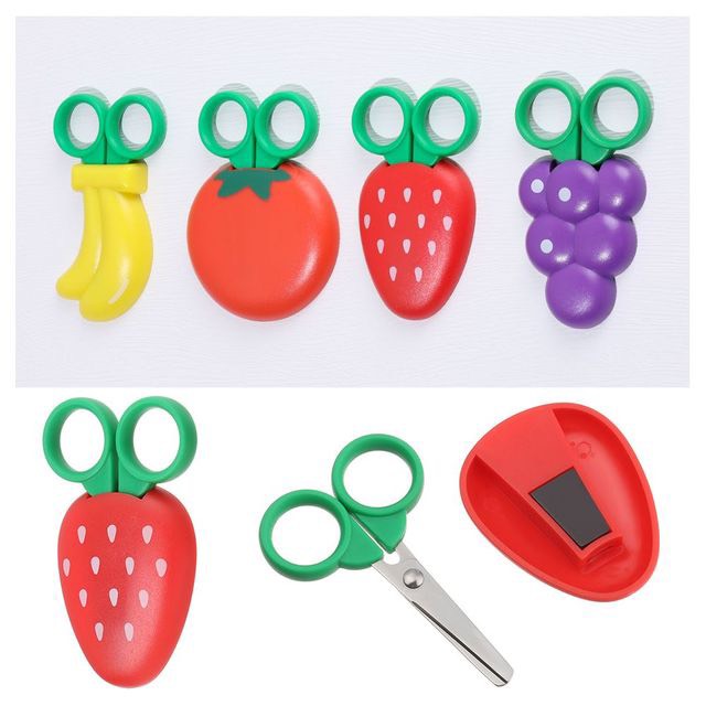 • Với lưỡi kéo nhỏ, lớp bảo vệ hình trái cây xinh xắn, các bé sẽ thích thú khi sử dụng