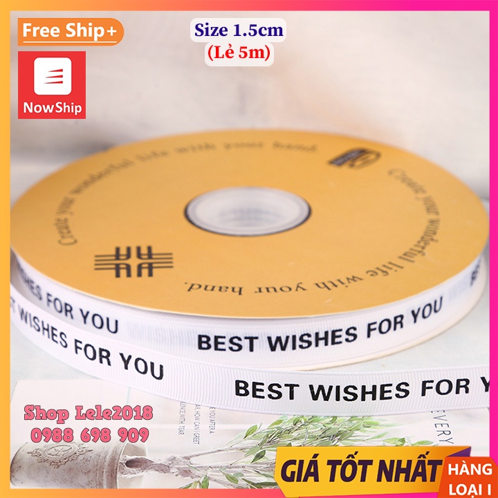Giới thiệu (Lẻ 5m & 3m) Ruy băng gân trắng sang chảnh in chữ bản rộng 1.5cm trang trí giỏ quà tặng