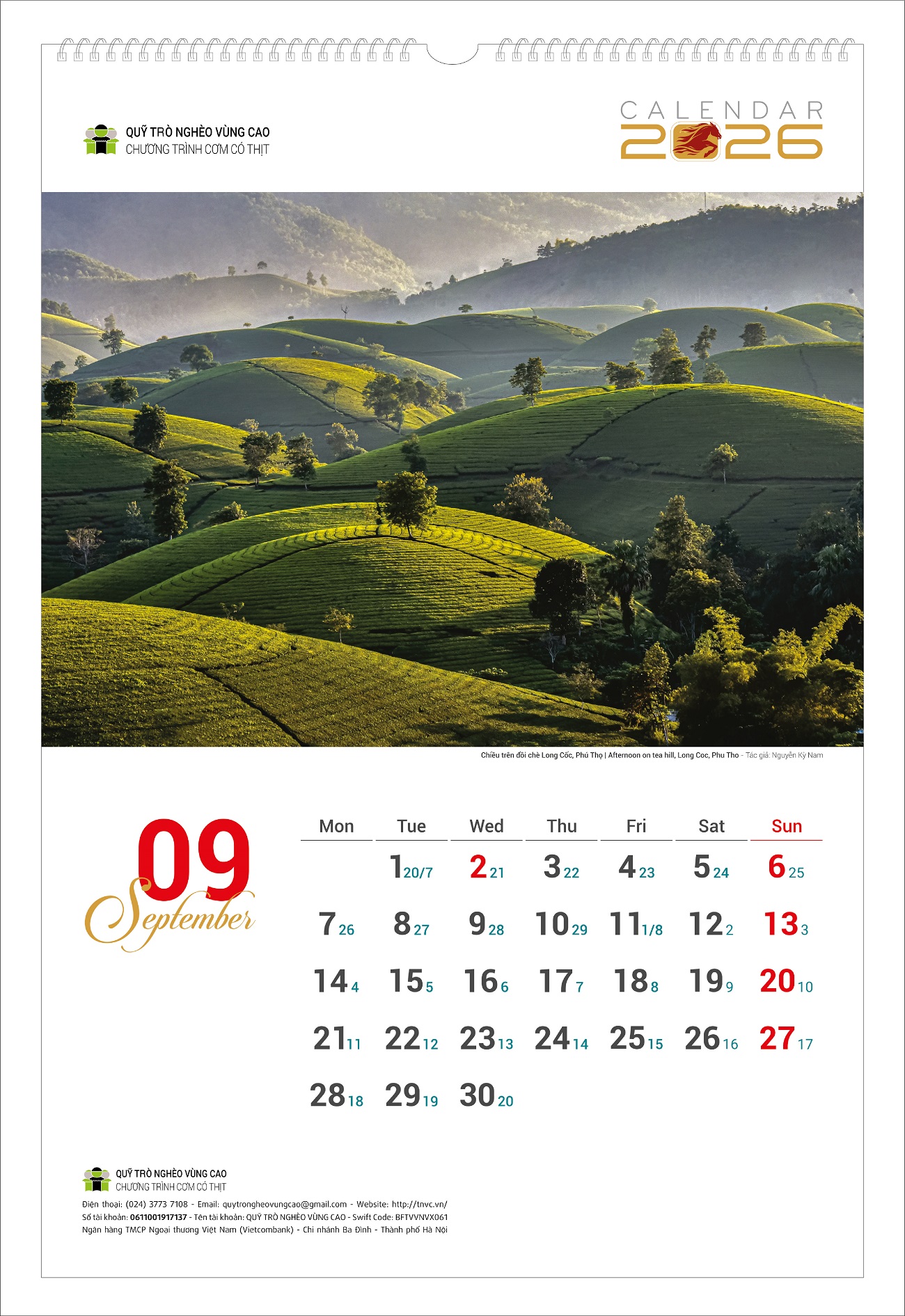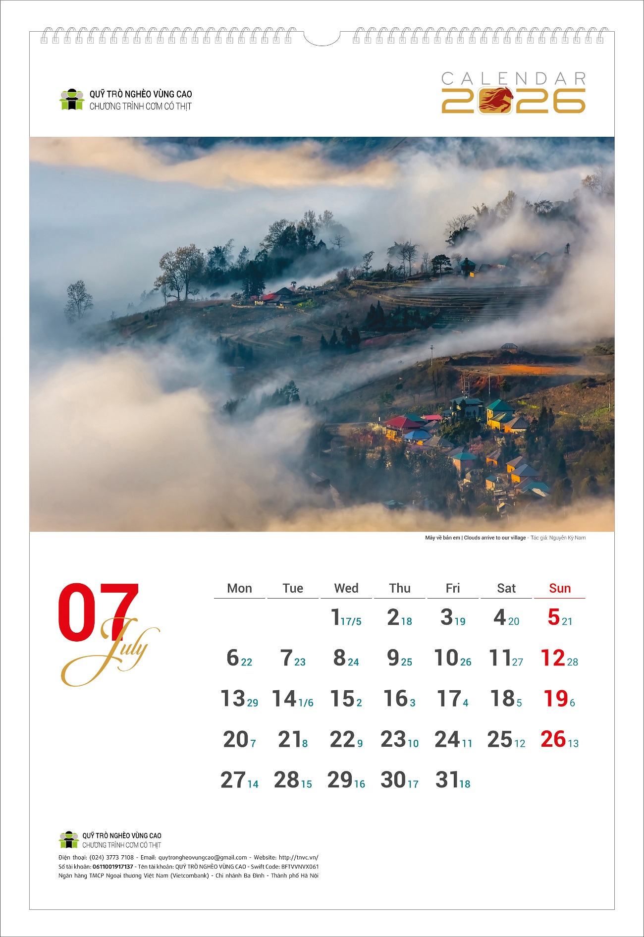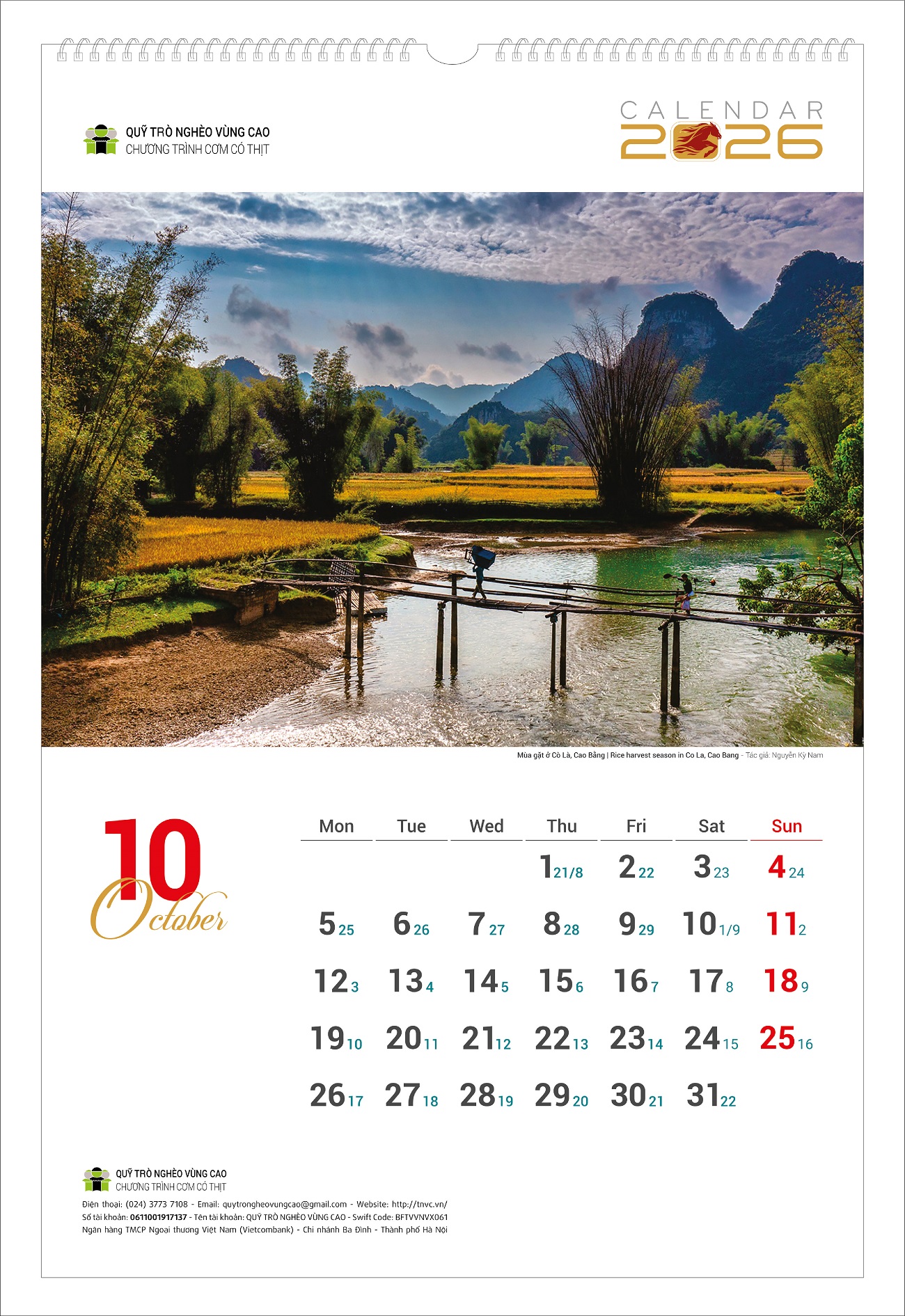Lịch tường Phong cảnh vùng cao 2026 Cơm Có Thịt - Lịch treo tường Quỹ Trò Nghèo Vùng Cao