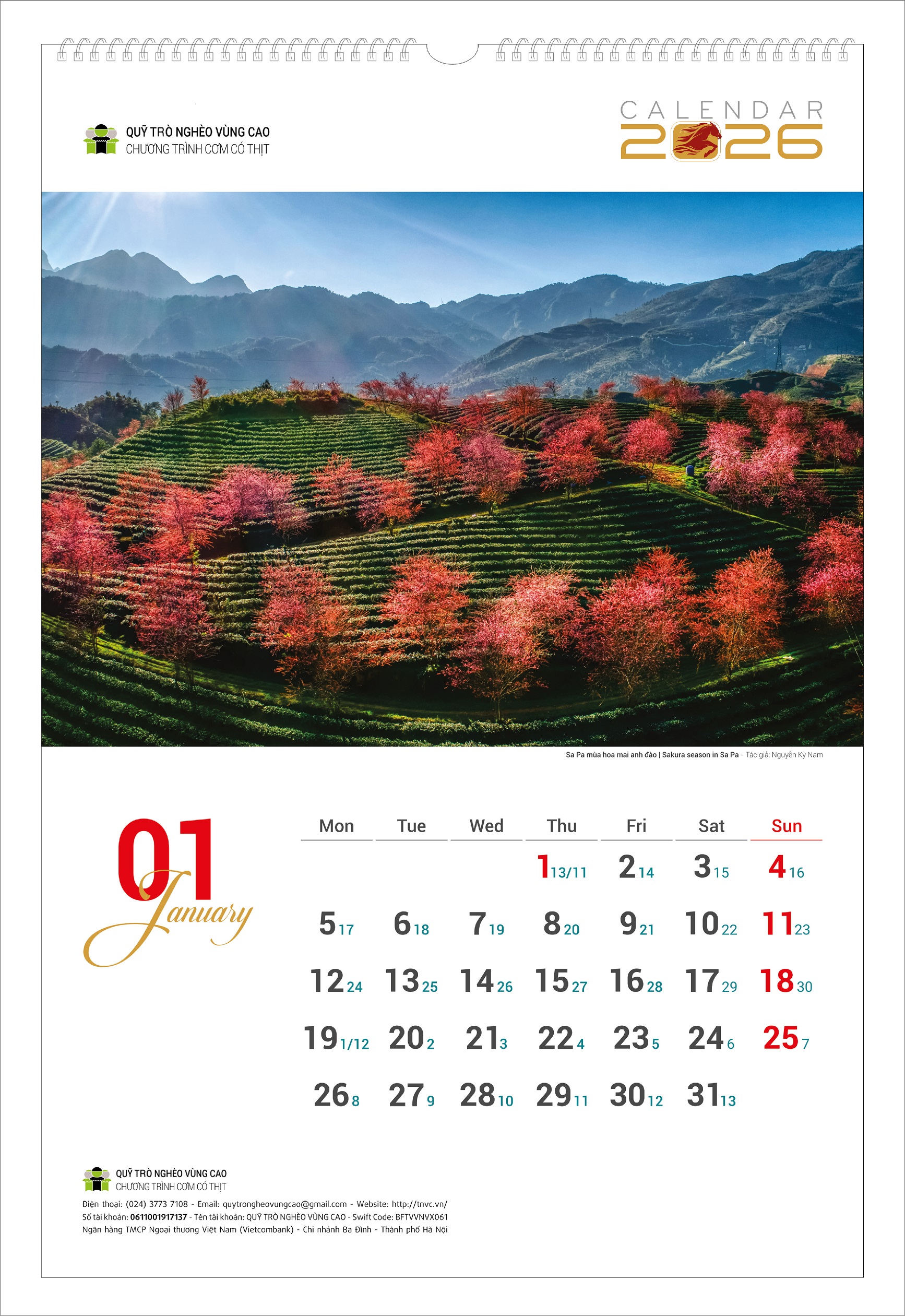 Giới thiệu Lịch tường Phong cảnh vùng cao 2026 Cơm Có Thịt - Lịch treo tường Quỹ Trò Nghèo Vùng Cao