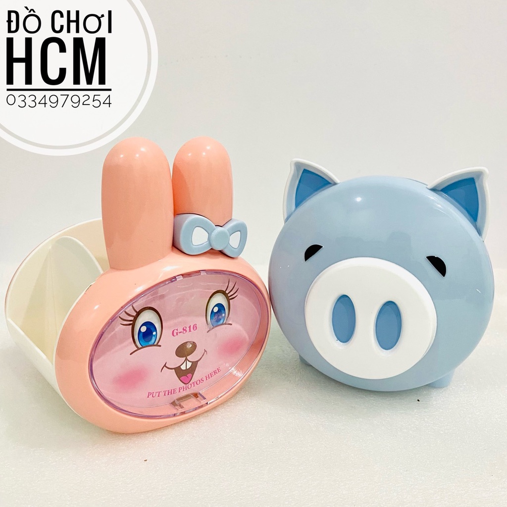 Giới thiệu [LOẠI LỚN 4 NGĂN] Ống cắm bút để bàn chú heo con/chú thỏ con dễ thương cho bé dùng cắm viết, thước, đồ đựng bút viết