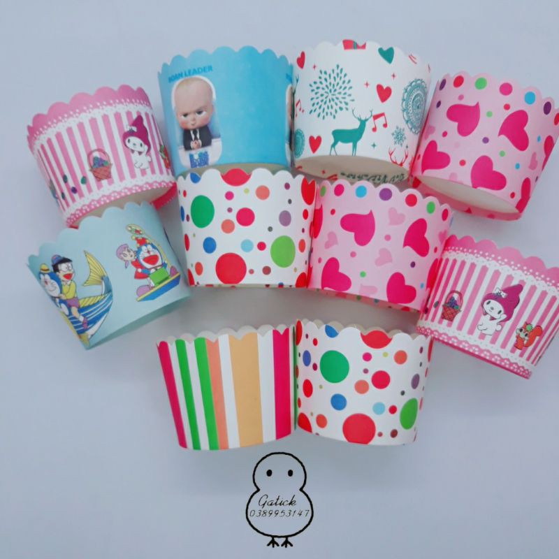 Lốc 50 ly cốc giấy cupcake nướng bánh viền răng cưa size to loại đẹp