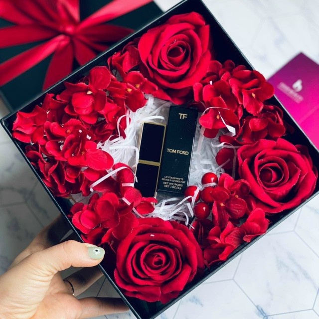 ✔️ hộp hoa đựng son, đựng quà giá siêu tốt. Hộp được làm từ bìa carton cứng dày dặn cán mẫu giấy xịn chắc chắn, hoa được làm từ chất liệu lụa dày màu đẹp bông to.