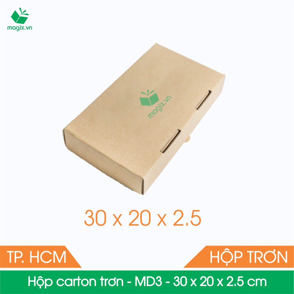 MD3 - 30x20x2.5 cm - 50 Thùng hộp carton trơn đóng hàng + tặng 25 decal HÀNG DỄ VỠ