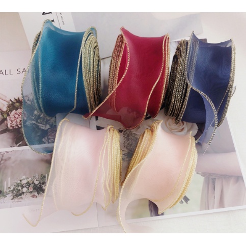 Văn Phòng Phẩm > Quà Tặng - Giấy Gói > Ruy Băng || Ruy băng voan nhũ viền lượn sóng kim tuyến bản rộng 5.8cm, 1 mét