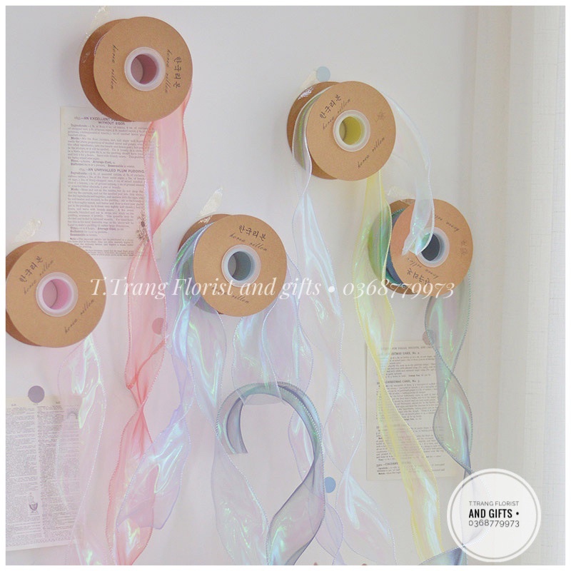 Văn Phòng Phẩm > Quà Tặng - Giấy Gói > Ruy Băng || Ruy băng voan sóng ánh bảy sắc nhiều màu cuộn 10m