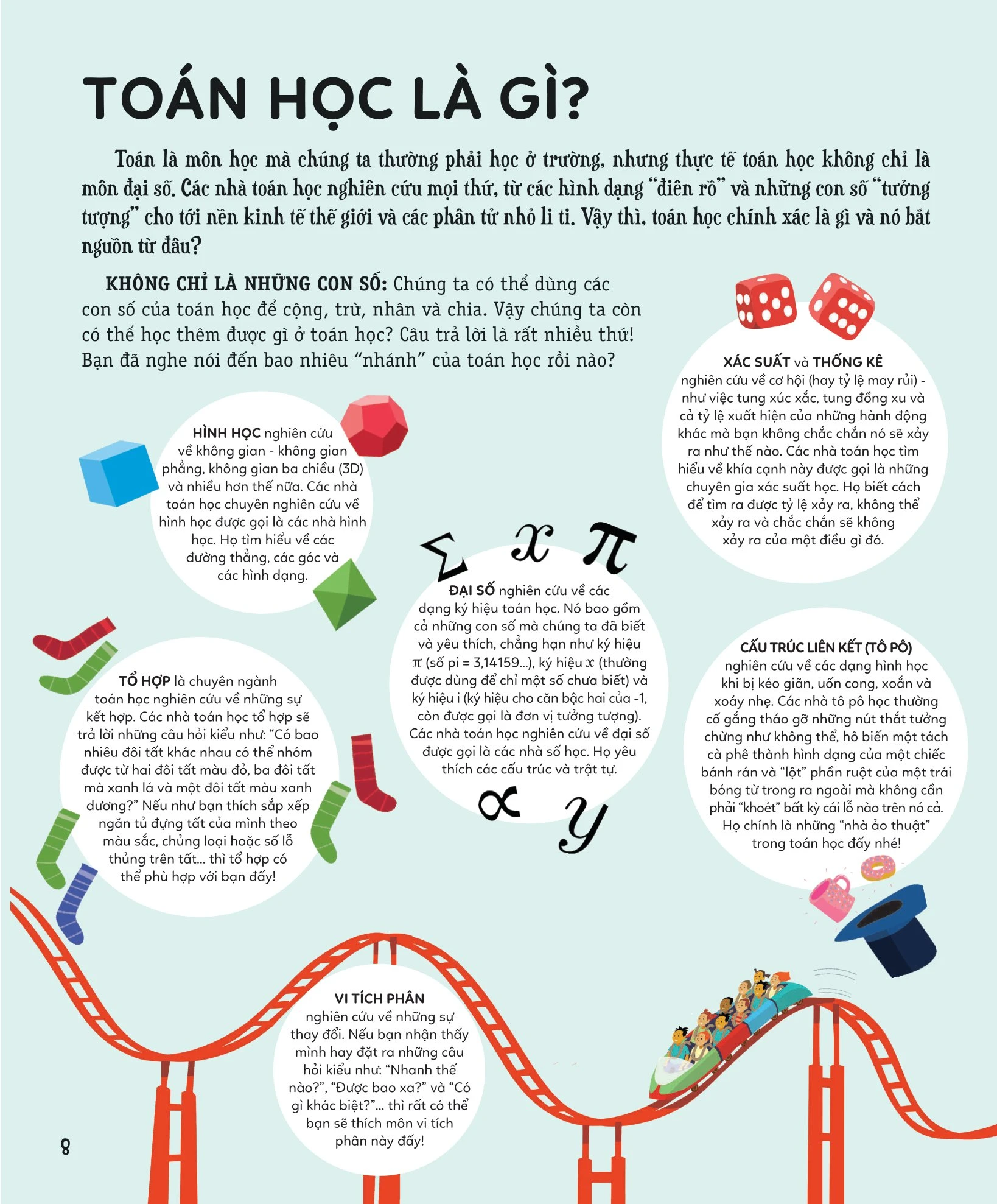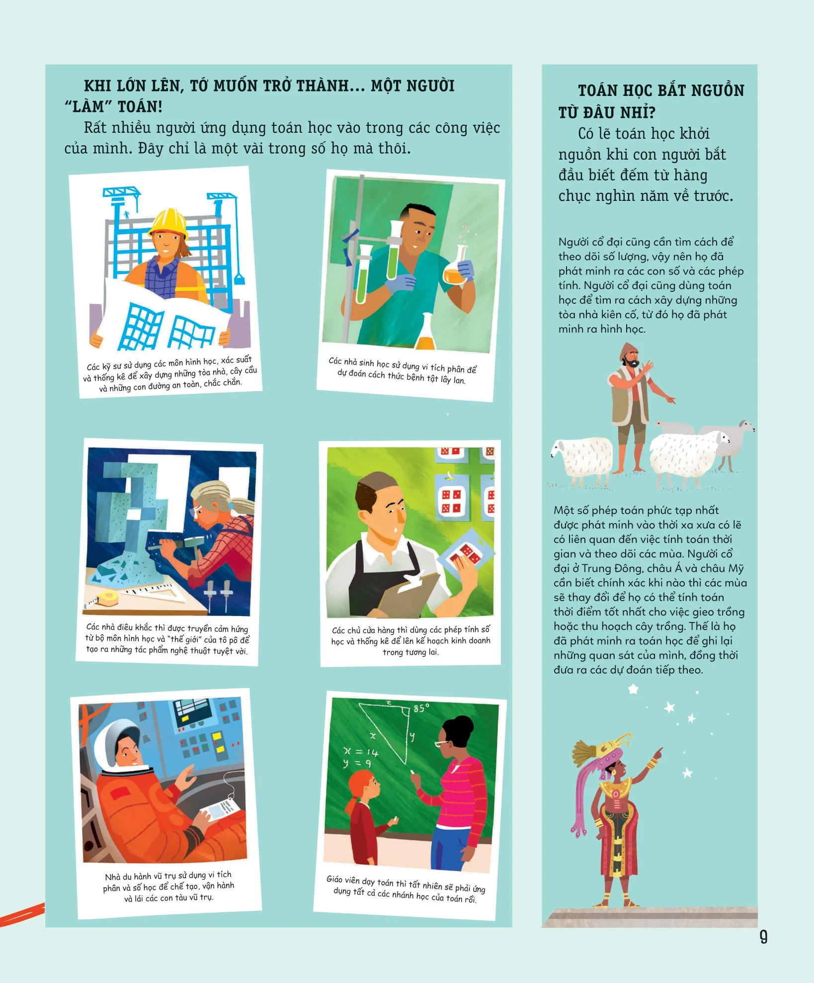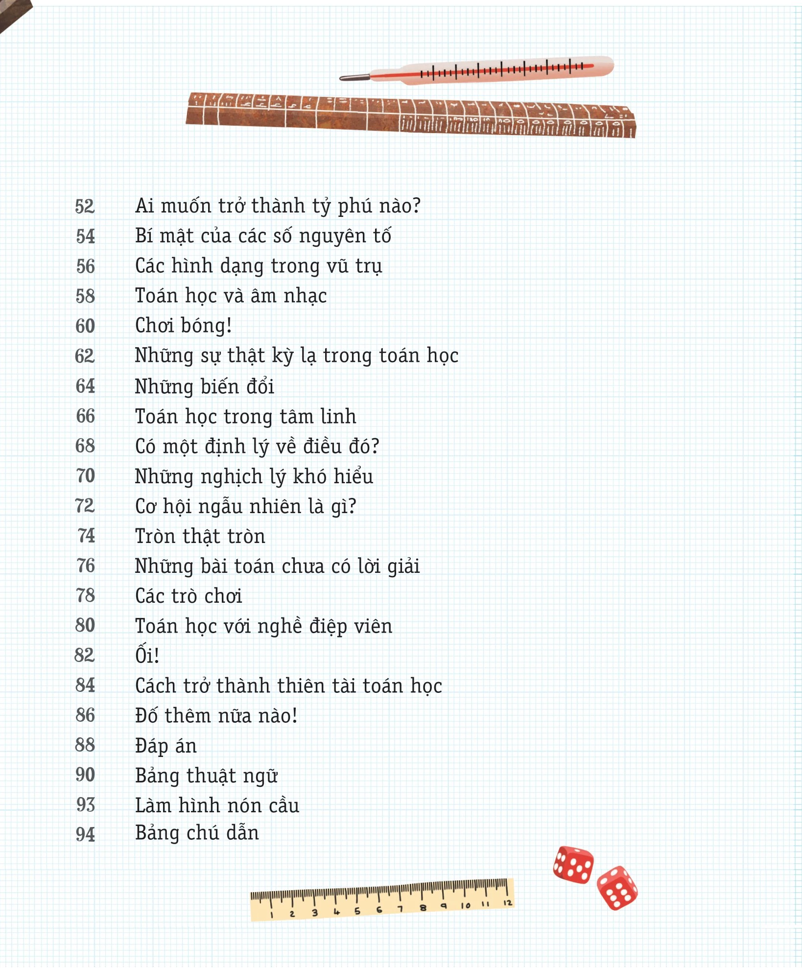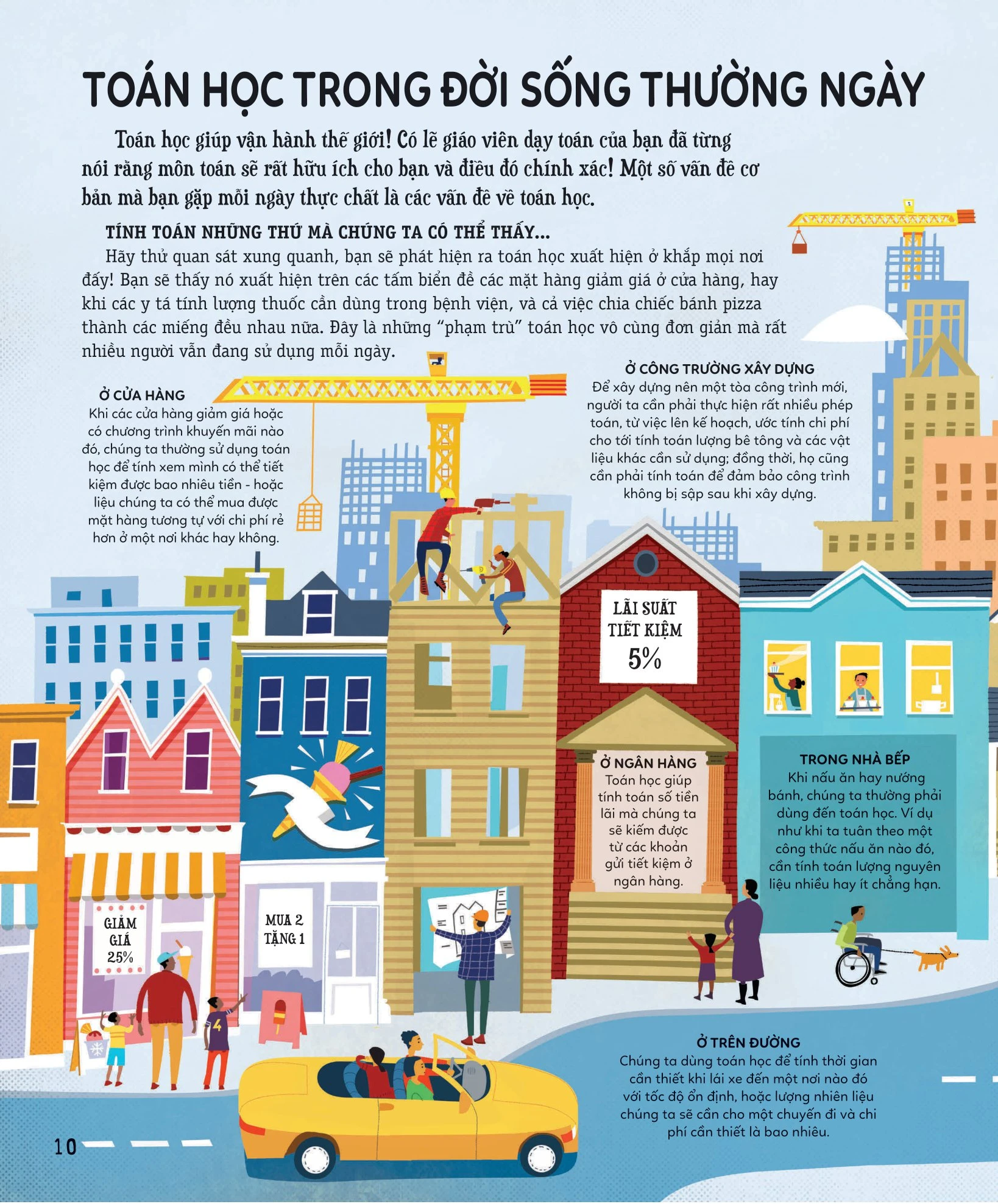 - Toán học trong cuộc sống: Cuốn sách sẽ giúp bạn đọc hiểu rõ hơn về vai trò của toán học trong các hoạt động hàng ngày như nấu ăn, chơi trò chơi, xây dựng nhà cửa...