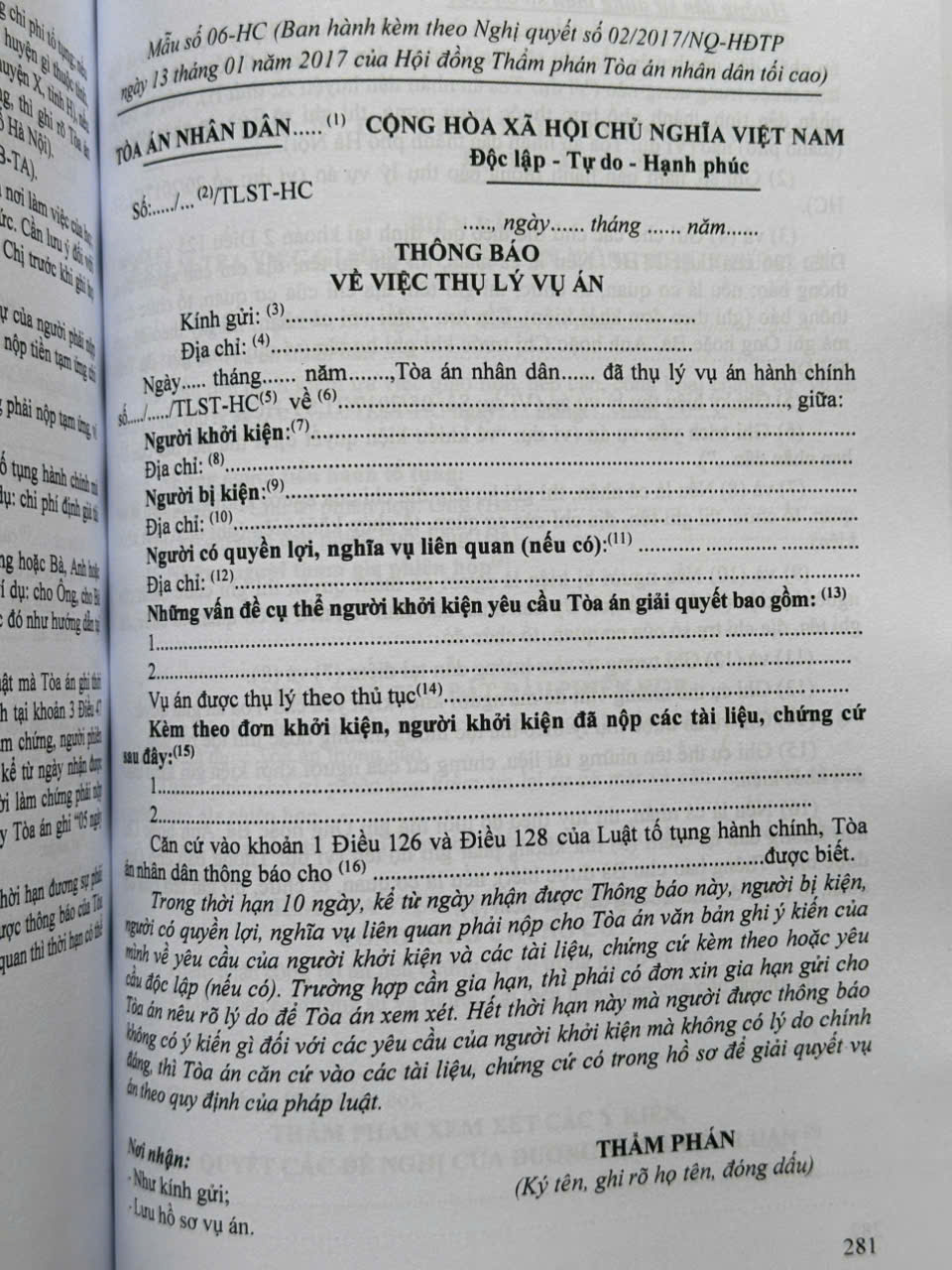 Phần thứ tư. BIỂU MẪU TRONG TỐ TỤNG HÀNH CHÍNH