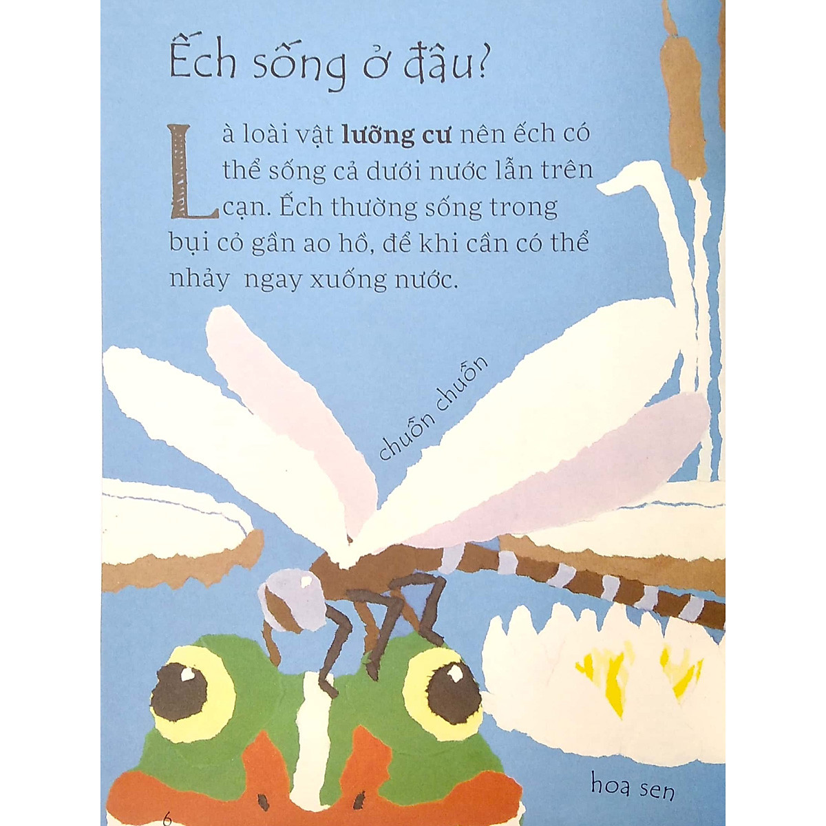 • Hình ảnh minh họa đẹp mắt: Những bức tranh màu sắc tươi tắn, sống động giúp trẻ dễ dàng hình dung từng giai đoạn phát triển của ếch.
