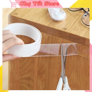 (Loại 1 Dày 2mm) Băng Keo 2 Mặt Nano Trong Suốt Siêu Dính Dài 3 Mét Có Thể Tái Sử Dụng