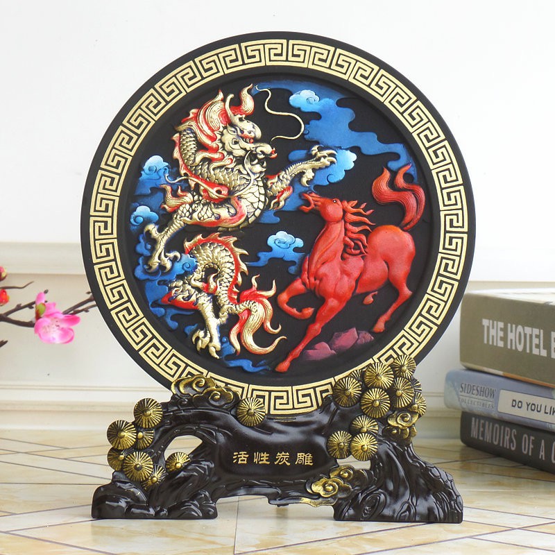 Giới thiệu Tranh đĩa trang trí LONG MÃ TINH THẦN, Tranh thư pháp, Vật phẩm phong thủy để bàn