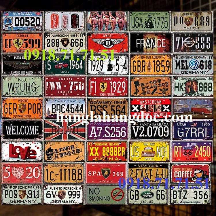 Tranh thiếc biến số xe trang trí retro vintage chuyên bar club, quán cafe, beer pub, nhà hàng, trà sữa mang đậm nét cổ điển và sang trọng