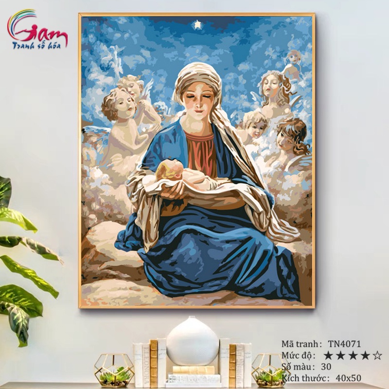 Giới thiệu Tranh tô màu theo số Công giáo Đức mẹ Maria căng khung 40x50cm TN4071