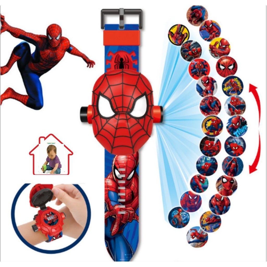 Vỉ đồ chơi đồng hồ người nhện chiếu hình ảnh lên tường ( cho bé)